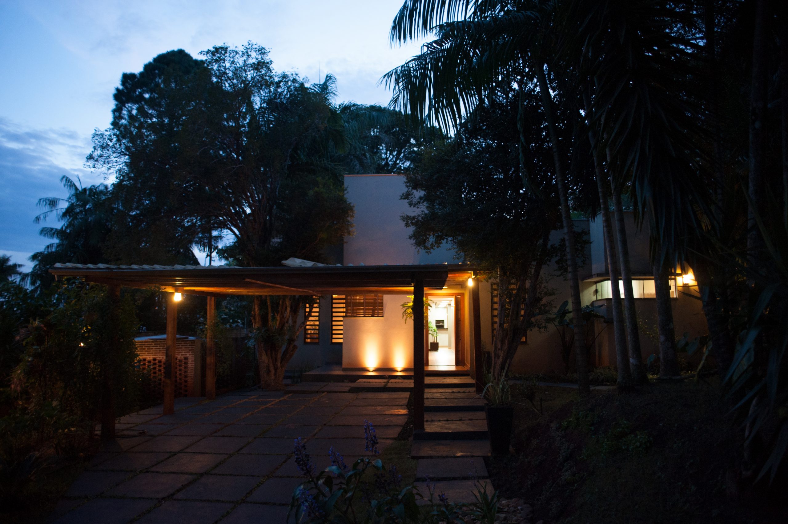 O verde e a natureza invadem a construção, que agora faz parte da natureza.